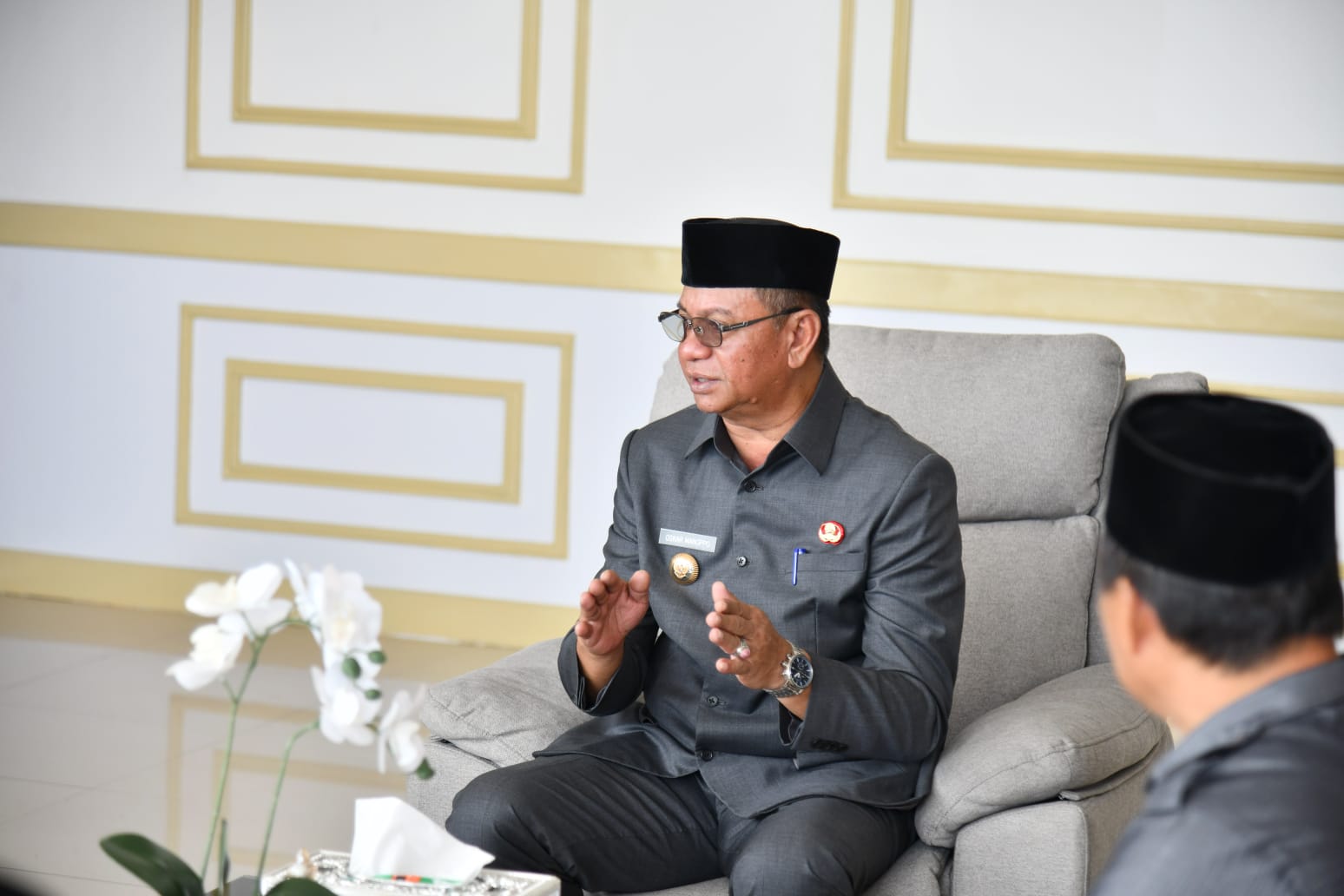Bupati Boltim Oskar Manoppo saat menerima kunjungan Tim Jebol Gisa 3T di ruang kerjanya di Kantor Bupati