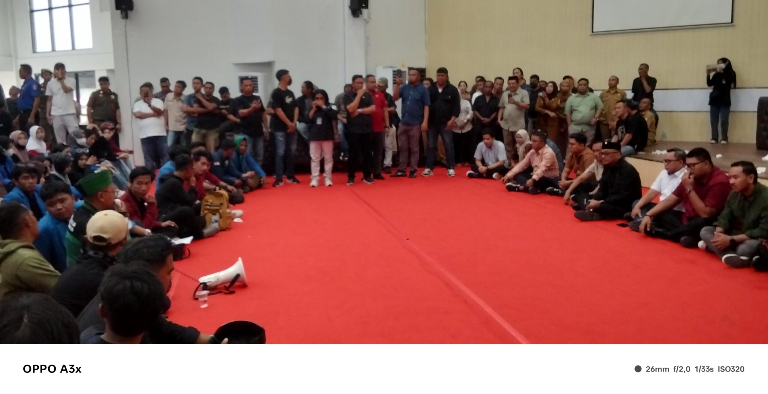 Sempat diwarnai tawar menawar dengan pihak kepolisian, puluhan mahasiswa akhirnya berhasil memasuki ruang pertemuan gedung Drpd Kotamobagu guna bertatap langsung dengan legislator.