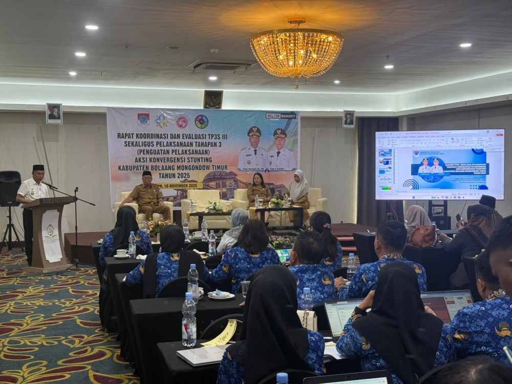 NEFAnews.com – Mewakili Bupati Bolaang Mongondow Timur (Boltim), Oskar Manoppo, Wakil Bupati Argo V. Sumaiku, membuka secara Rapat Koordinasi dan Evaluasi TP3S III Sekaligus Pelaksanaan Tahapan 3 (Penguatan Pelaksanaan) Aksi Konvergensi Stunting Kabupaten Bolaang Mongondow Timur Tahun 2025 di Kotamobagu pada Senin (10/11/2025).