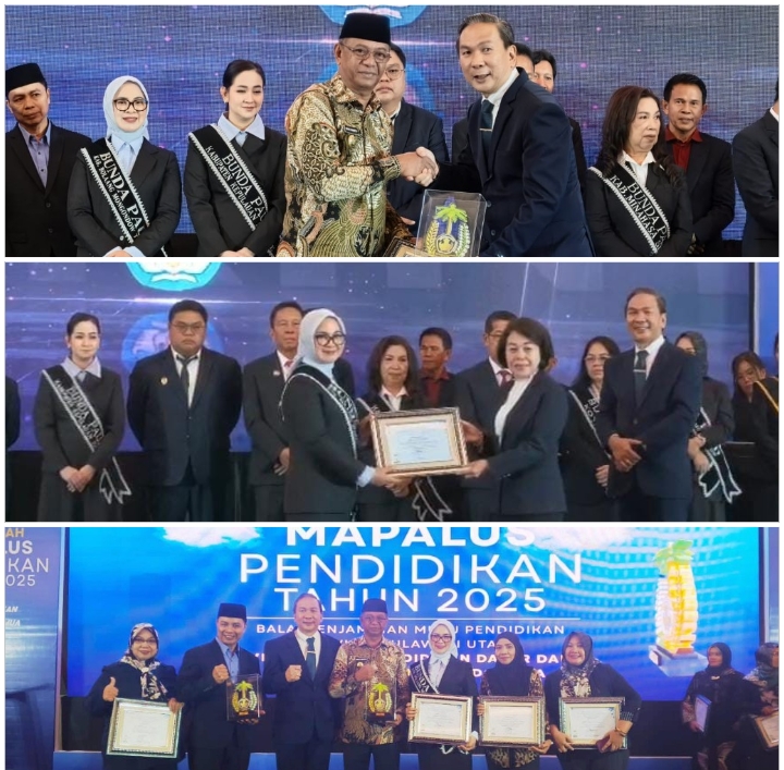 Penghargaan pertama diberikan kepada Ny. Rosita Manoppo Pobela., juga dinobatkan sebagai Bunda PAUD terbaik pada kategori berkontribusi pada apresiasi Bunda PAUD tingkat nasional tahun 2025.