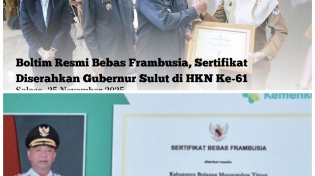 NEFAnews.com - Pemerintah Kabupaten Bolaang Mongondow Timur (Boltim) resmi menerima sertifikat bebas Frambusia tepat […]