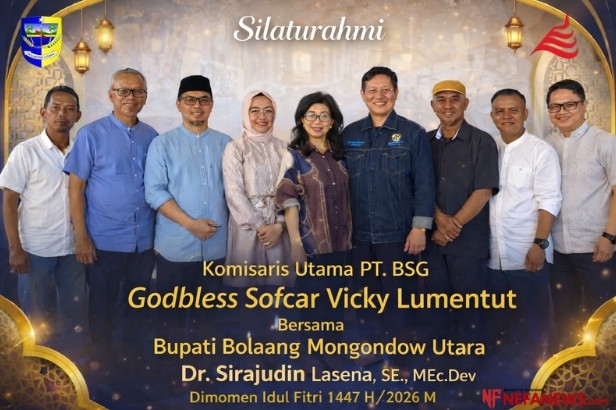 BOLAANG MONGONDOW UTARA – Momentum Hari Raya Idul Fitri 1 Syawal 1447 H/2026 M dimanfaatkan untuk mempererat hubungan kelembagaan. Komisaris Utama PT. Bank SulutGo, Godbless Sofcar Vicky Lumentut, bersama jajaran melaksanakan kunjungan silaturahmi ke kediaman Bupati Bolaang Mongondow Utara (Bolmut), Dr. Sirajudin Lasena, SE., M.Ec.Dev.