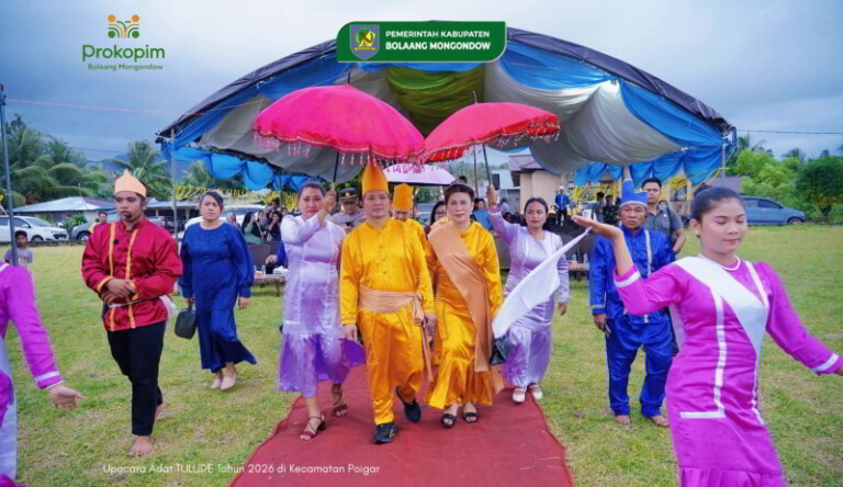 NEFAnews.com, BOLMONG – Kehadiran Wakil Bupati (Wabup) Bolaang Mongondow (Bolmong), Dony Lumenta, didamping Sekretaris Tim Penggerak PKK Kabupaten Bolmong, Ny Syliane Lumenta-Pangalila, dalam pelaksanaan Upacara Adat Tulude, tahun 2026 yang digelar di Desa Tiberias, Kecamatan Poigar, menjadi simbol atas perhatian Pemerintah Kabupaten (Pemkab) Bolmong terhadap nilai-nilai keberagaman adat dan budaya yang harus dilestarikan. Sabtu (14/02/2026).