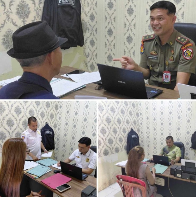 Kasat Pol-PP Kotamobagu, Sahaya Mokoginta saat melakukan pemeriksaan ketiga pemilik tempat hiburan malam.