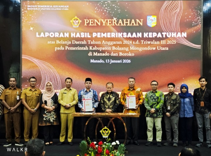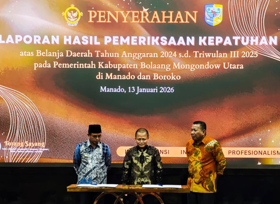 Penyerahan LHPK tersebut diserahkan langsung oleh Kepala Badan Pemeriksa Keuangan (BPK) Republik Indonesia Perwakilan Provinsi Sulawesi Utara, Bombit Agus Mulyo, SE., MM., Ak., CA., ERMAP., GRCP., GRCA., CSFA, kepada Pemerintah Daerah Kabupaten Bolaang Mongondow Utara, Selasa (13/01/2026).