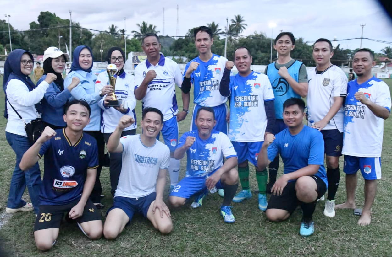 Pertandingan ini turut disaksikan oleh Ketua TP-PKK Boltim, Ny. Rosita Manoppo-Pobela, yang tampak antusias memberikan dukungan bersama ratusan masyarakat yang menjadi suporter pihak pemkab boltim.