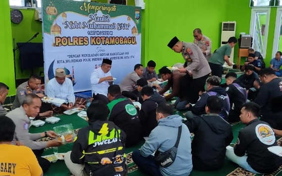 “Kegiatan ini merupakan wujud sinergitas dalam bingkai kemitraan antara Polres Kotamobagu dan komunitas ojek dalam memupuk keimanan dan kecintaan terhadap Baginda Rasulullah,” ujar Kapolres.
