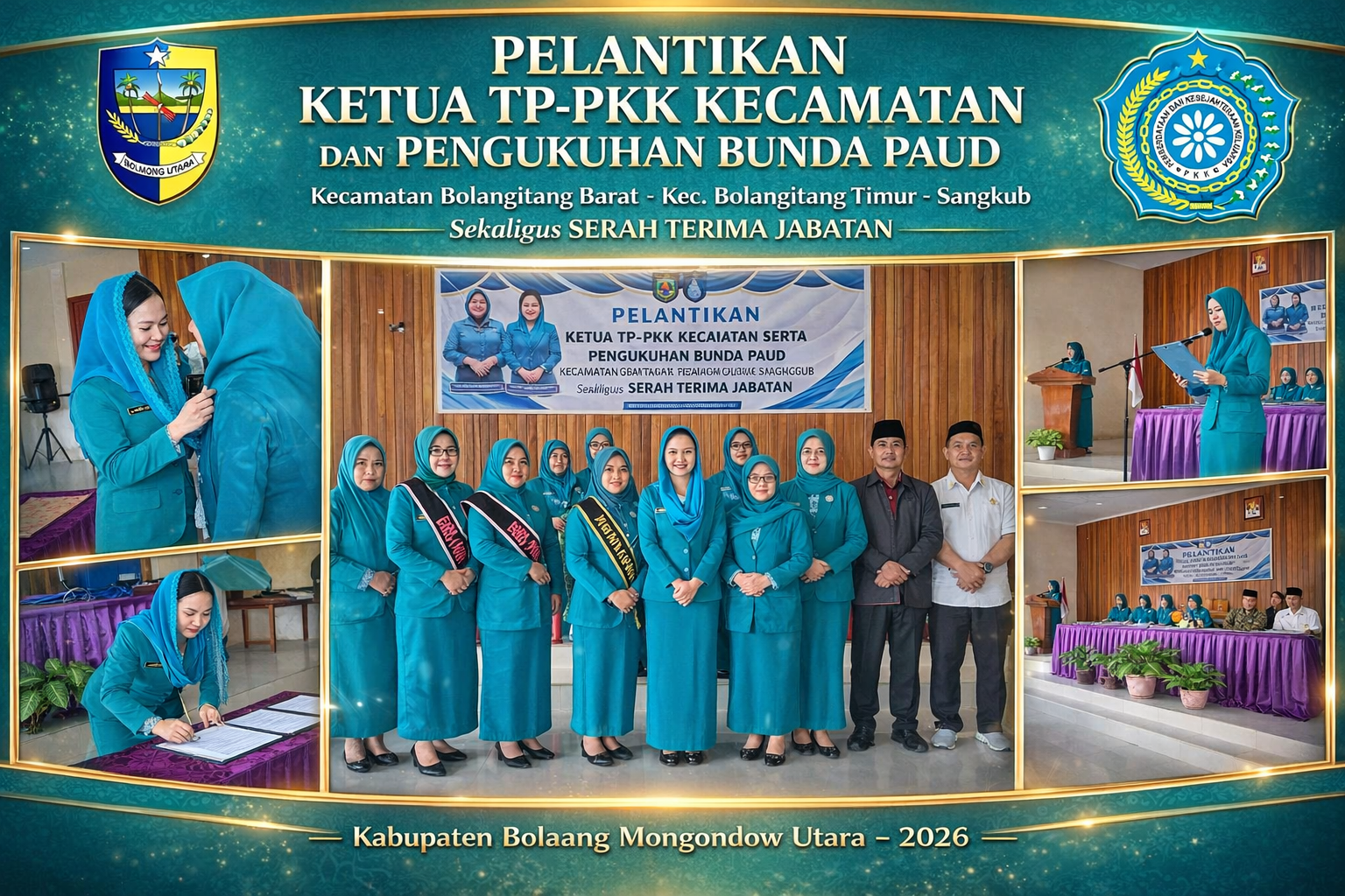 Pelantikan tersebut dirangkaikan dengan pengukuhan Bunda PAUD serta serah terima jabatan bagi pengurus TP-PKK di tingkat kecamatan. Adapun tiga Ketua TP-PKK Kecamatan yang dilantik masing-masing berasal dari Kecamatan Bolangitang Barat, Kecamatan Bolangitang Timur, dan Kecamatan Sangkub.