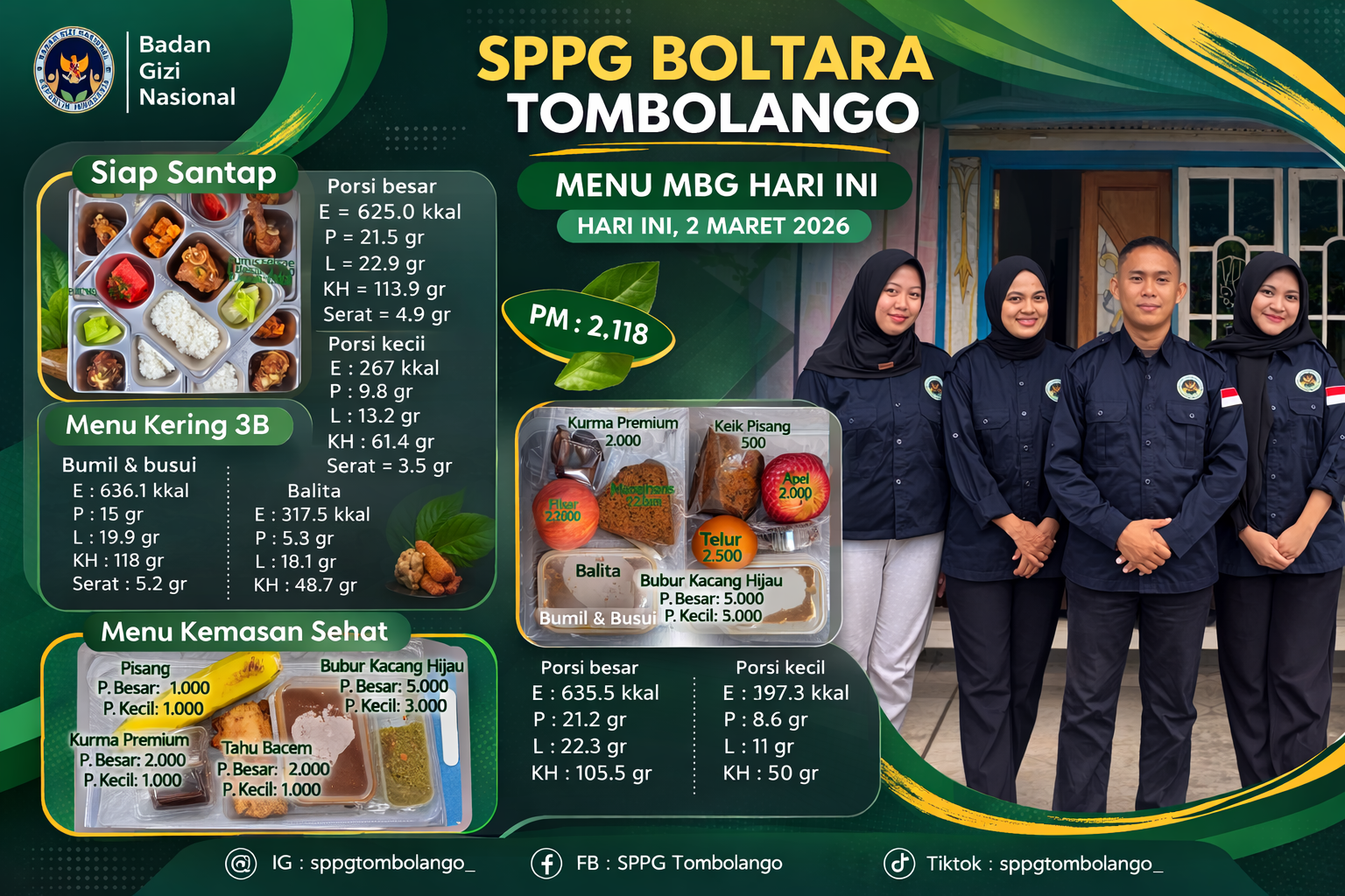 Ia menambahkan, ke depan SPPG Tombolango akan terus meningkatkan kualitas pelaporan dan dokumentasi kegiatan, seiring dengan peningkatan mutu penyajian menu MBG, agar manfaat program dapat dirasakan secara maksimal oleh masyarakat penerima manfaat di Kabupaten Bolaang Mongondow Utara.