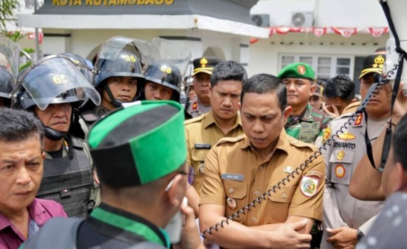 NEFAnews.com – Wali Kota Kotamobagu dr. Weny Gaib bersama Wakil Wali Kota, Rendy Virgiawan Mangkat, temui di clangsung dengan para demonstrasi yang digelar aliansi mahasiswa di depan Kantor Wali Kota Kotamobagu, Senin (1/9/2025).