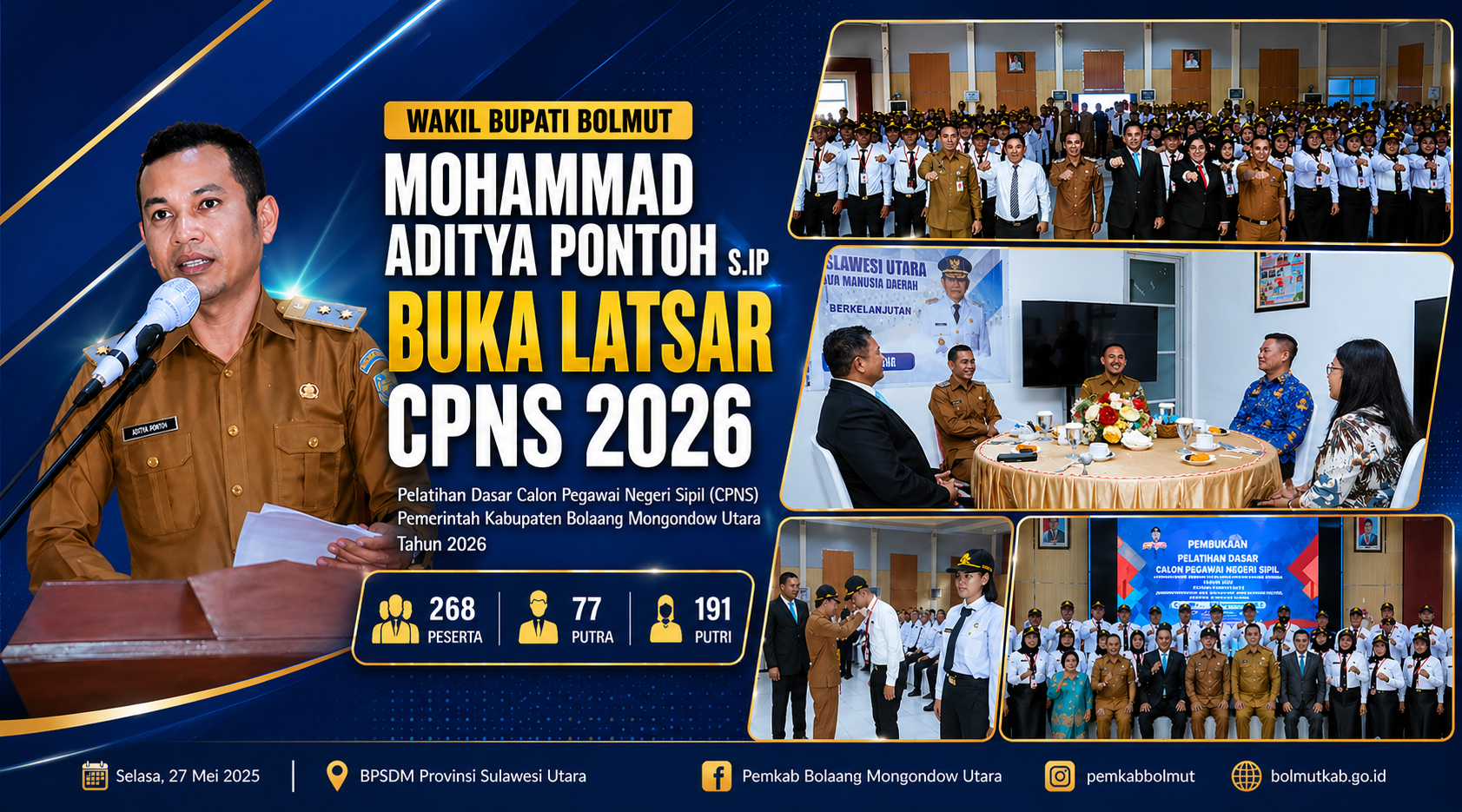 NEFAnews Com BOLMUT – Wakil Bupati Bolaang Mongondow Utara, Mohammad Aditya Pontoh, S.I.P, secara resmi membuka Pelatihan Dasar (Latsar) Calon Pegawai Negeri Sipil (CPNS) Pemerintah Kabupaten Bolaang Mongondow Utara Tahun 2026.