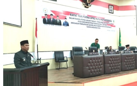 Hal ini disampaikan Wali Kota Kotamobagu, dr Weny Gaib saat menghadiri rapat paripurna DPRD Kota Kotamobagu dalam rangka pembicaraan tingkat ll pengambilan persetujuan atas rancangan Peraturan Daerah (Perda) tentang Anggaran Pendapatan Belanja Daerah (APBD) Kota Kotamobagu tahun anggaran 2026, di Ruang Rapat DPRD Kotamobagu. Jumat (19/12/2025).